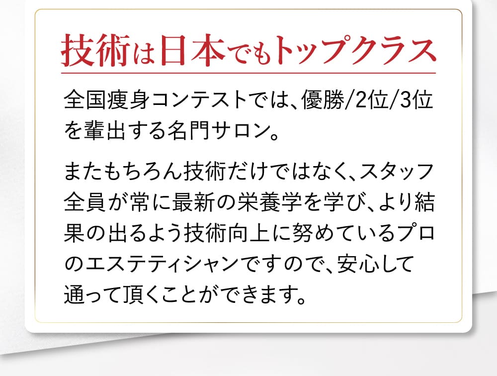 当サロンはマンションの中にある完全個室のプライベート空間となっておりますので、他のお客様と顔を合わすこと無くこっそりと通っていただけます。