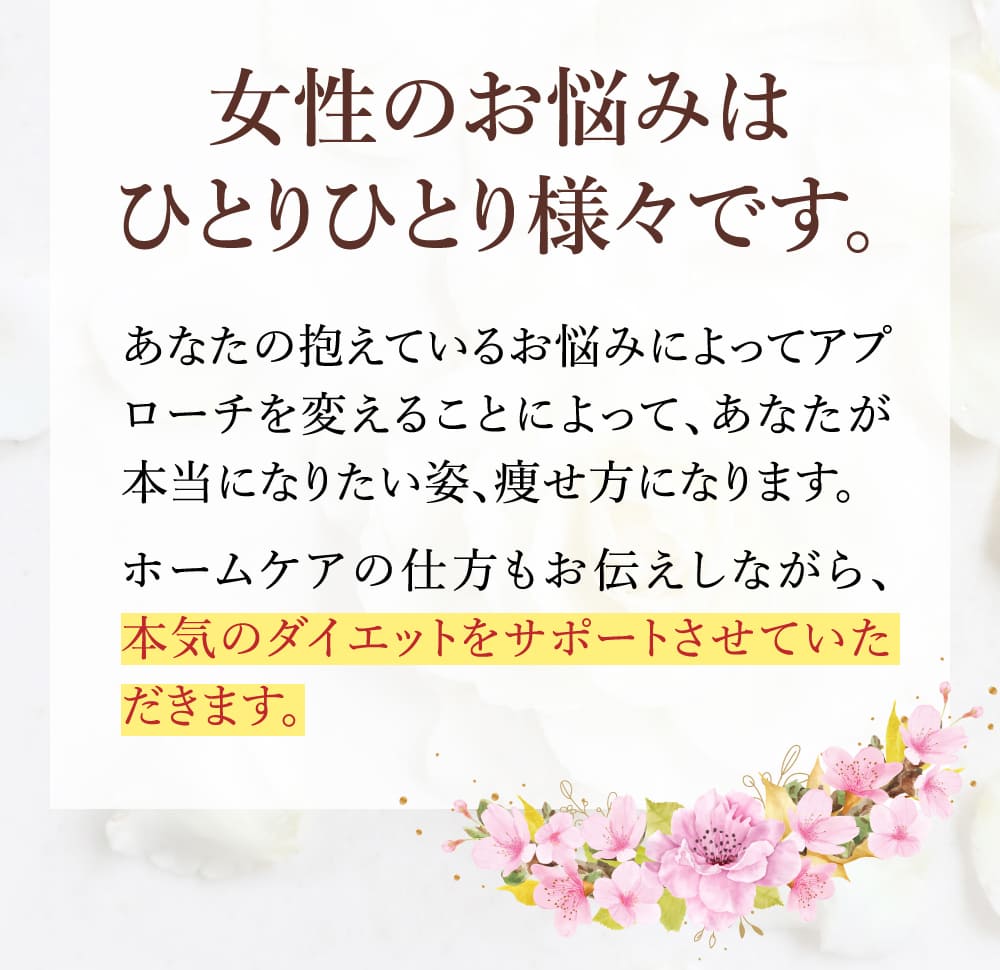 しかしお客様によってお身体の状態が異なりますので、初回カウンセリング時に生活習慣や今までのダイエット経験等お伺いしながら、今後のプランについてご提案させていただいております。